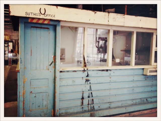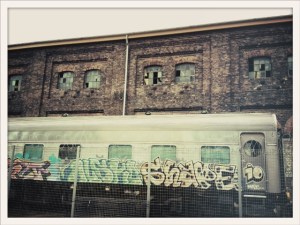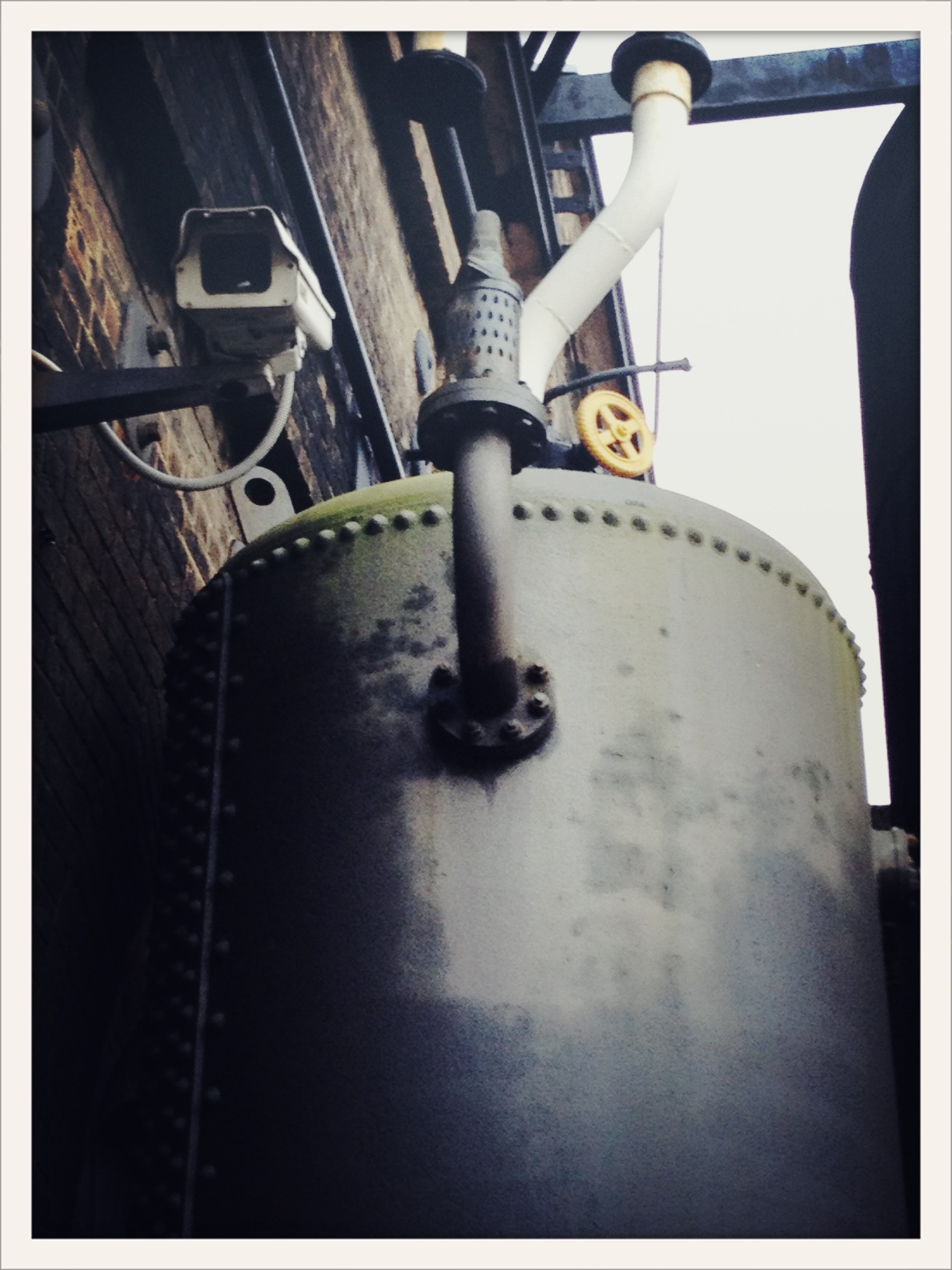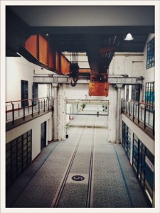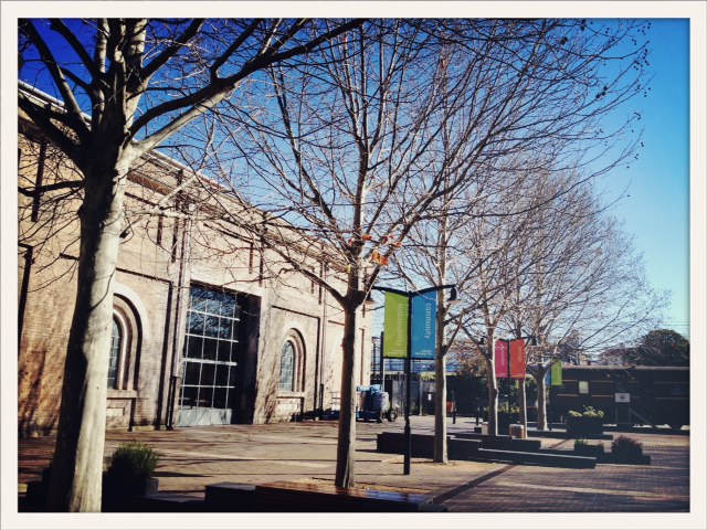 Vast bolted pieces of the obsolete sit redundant in the windows, as if gazing curiously into the present. The trundling beep of cherry pickers and scissor lifts, the clink of a teaspoon and the sharp bite of Ajax serves to remind me of the prosaic nature of Eveleigh now. The cranes and hydraulics lie idle, the tracks no longer lead anywhere, and there is a eerie calm, interspersed with busy cutlery and whirring cash machines…