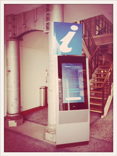 The Eveleigh Locomotive Workshop is decked out in pop-bright flags that herald Innovation, Heritage, Sustainability, and Community, the tenets of a modern reincarnation. Once the powerhouse of a vibrant steam industry, Eveleigh has evolved into a paradox; it is an industrial museum, threaded with memory and steeped with the souls of the past, while at the same time a bright-eyed bustle of innovation, the Australian Technology Centre, chock full of businesses with names like elcom; ac3; and thoughtweb.