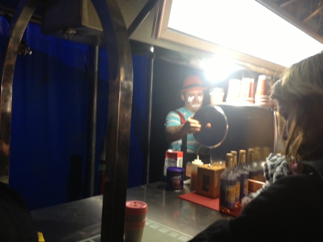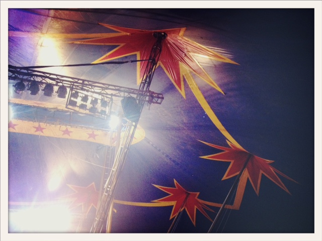 Frogmarched past tatty neon signs – that promise Photos with our lion cubs, just $40! Complete with souvenir Stardust frame! and conjure spangled memories of the 80s while re-igniting my inordinate fear of clowns – the Tin Lid curls himself into my silhouette, a bunny caught in the lights. Our seats clang as we sit and the air is streaked with greasepaint and nerves and the sound system bellows that classic “Showtime!” carnival music.