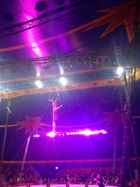 This is undoubtedly family affair with a good degree of moonlighting. From toddlers to pensioners, all are involved and at the interval it is clear why. The circus inhales workers like a two-pack a day smoker inhales tobacco – with a wheezing dedication. The gravelly-voiced black-clad roadie in his 60s who serves me margarine-slathered popcorn later appears as the trapeze catcher, decked out in a lycra leotard split to the navel. The chick with the door list sports glitter-encrusted lids and dangly earrings that belie her night job and a clown is serving coffee, makeup intact.