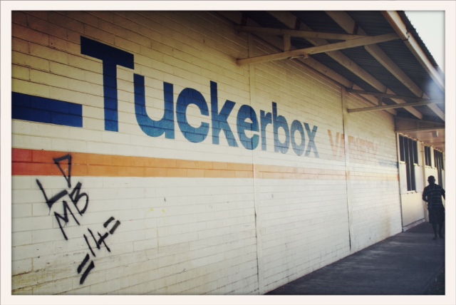 At eight on the dot, beneath charcoal skies, the bottlo slams shut, chains on the gate in seconds. The complex sighs and blinks out, but the carparkers rage on late into the night. Behind sturdy compound walls and a sky-high solid steel gate that wears its tags like gang tattoos, we are left to ponder how a place of such beauty can inhabit such pain.