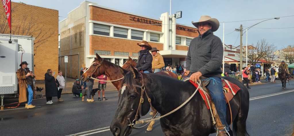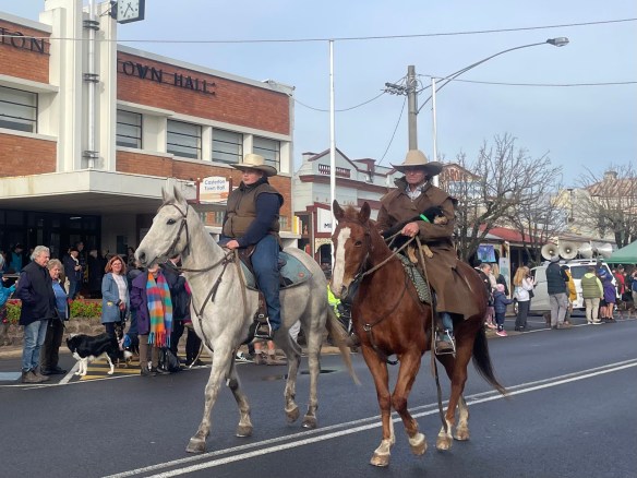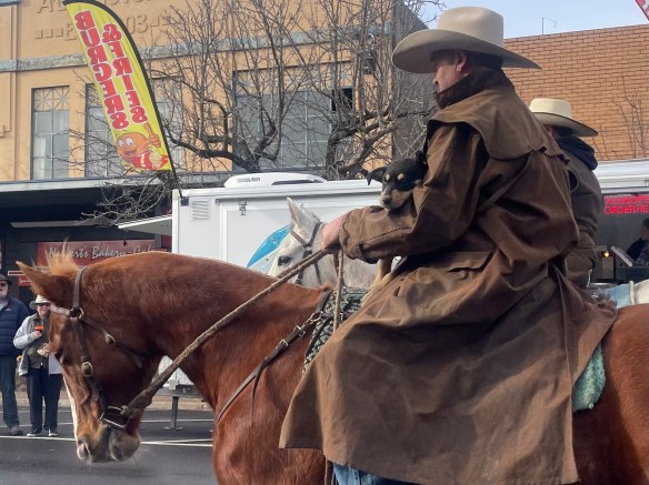 Akubras jut at every angle atop grizzled features scored into deep contours of life lived hard and well. Small kids barrel in the direction of the fairy floss, the Carlton is tapped, and the main street is gussied up in her best frock, a hint of high vis at her extremities.