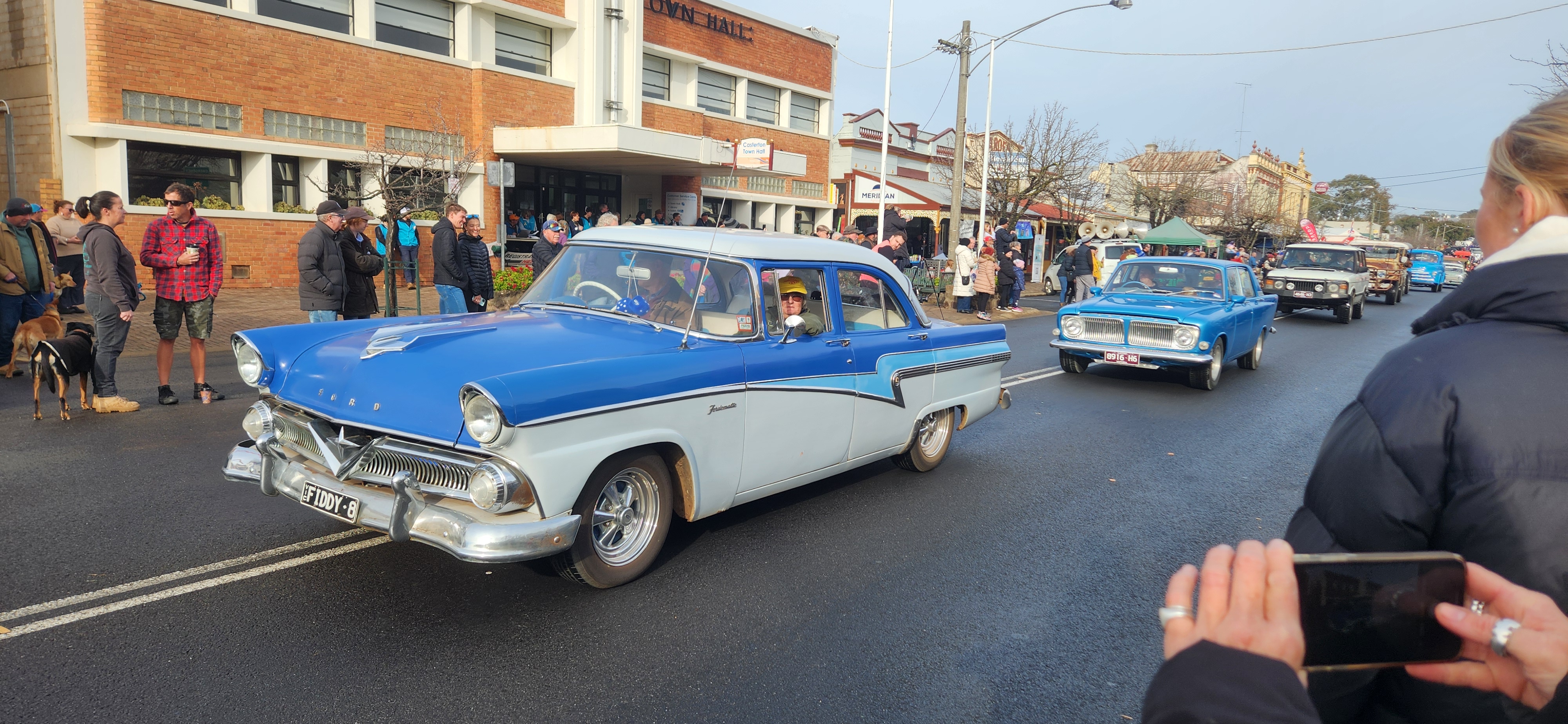 It is billed as a sun-drenched autumn festival, crowds lining the streets, bagpiped marches, RSL-led parades, and dogs everywhere you look. Except the closer we get, the more extreme the weather, an Antartic tantrum of ice-fringed squalls that rock the van and unnerve the Kelpies.