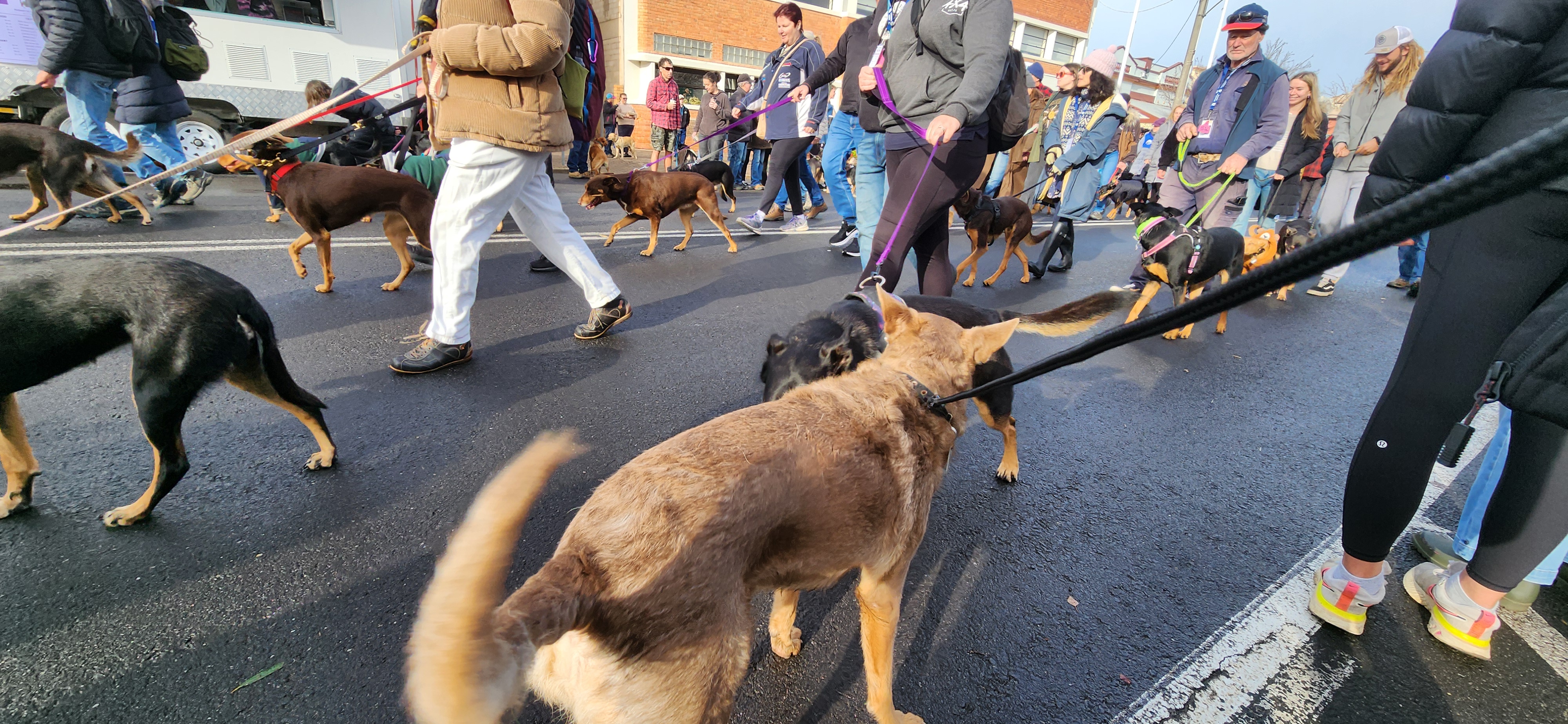 The parade is six-deep, to see the tribe of dogs 700 strong proudly snaking through the town, followed by old timers, stockmen, the fireys and kids from the school.