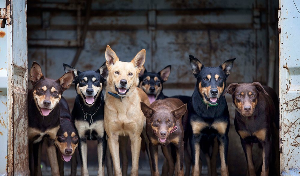 The muster is like a high-school reunion for dogs. Black and tans, blues, silvers, reds, blondes, there’s a hierarchy, a pack order, and within that, there are striations of when and how. Our urban Kelpies are free-er somehow, less expected to do anything but be with us, a novelty thanks to their colour and city road skills, less working, more w-o-r-k-i-n’…