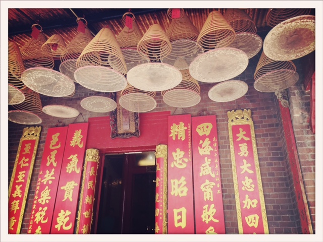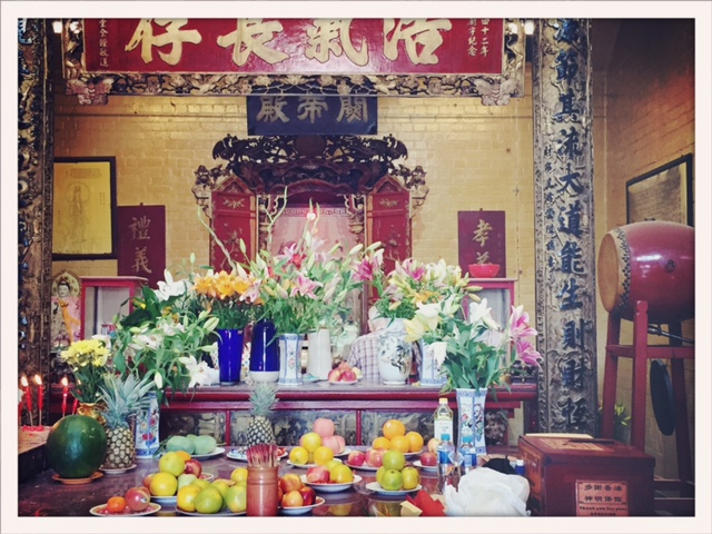 The red-brick temple with its fluted gables is dedicated to folk hero Kwan Ti – revered by Daoists, Confucians and Buddhists alike – and is flanked by the Chapel of Departed Friends and the Chapel of Good Fortune. I can’t help but wonder if the departed friends ought to have visited the Chapel of Good Fortune to ward off their departure, but I am silenced by a matriarchal glare.