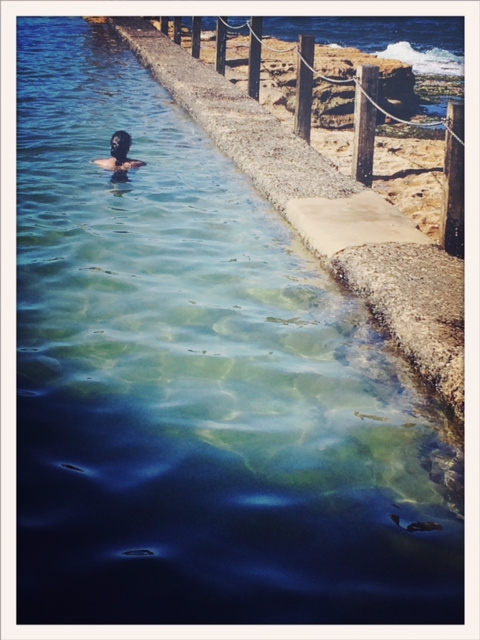 Squalls of kids (under 13 if they are boys) frolic in the limpid shallows as matriarchs motor past under full sail, their destination a slow and steady 20 lengths. Woman bask on the rock walls, glistening with sea water and contentment. Rogue waves courtesy of a king tide sidle up and boom into the pool eliciting squeals of joy or a tut of annoyance, and the scents of tobacco and coconut, perfume, salt and the fine dust of Lily of the Valley talc mingle deliciously.