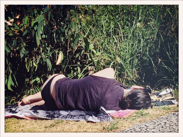 The swells and curves of the female form are many and varied, a nubile tribe unfettered by responsibility and care, though there is much in evidence. The pool mirrors their form, an extended limb of land curls around the soft swell of a rock belly that is caressed by the ocean. On the flat caramel rock shelf, pockmarked by time and sluiced by the ocean, women lounge like carnival seals, splashes of vermillion, indigo and pearl and the smooth hairless planes of their bodies lending an exotic melee to this ancient coastline.