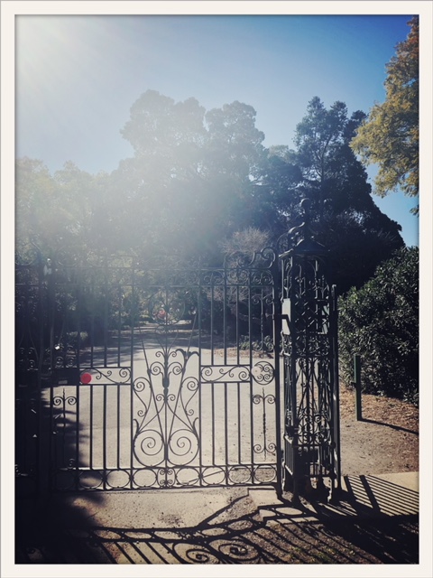 Eadith was described as fiercely patriotic, loyal to the Empire and ‘a Britisher to the backbone’, despite being born and bred in Australia. Her allegiance is painfully clear in her devotion to the gardens: water is pumped and sprinkled on to the grounds day in, day out. The roses, though not blooming at this time of year, have a team of carers to disperse their needs, OH+S fluorescence a beacon of duty. Post and rail fences are taped up like limbs requiring splints, and the gates have electrical collars as if they might escape.