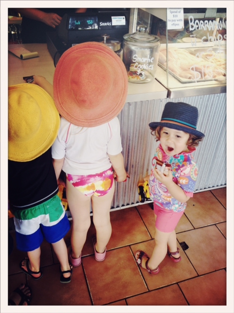And then we hit the sand in a flurry of small feet, the Tin Lid joined for the jaunt by his besties, two dark-haired beauties whose sisterly bond has stretched to include him. There is a requirement for chocolate Paddle Pops, accompanied by deep sighs of patient waiting: