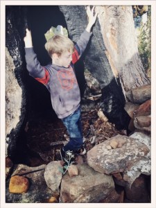 A quick round of Pooh Sticks, adapted today into a gum leaf race, and we head back to the track, the long scramble uphill bearable with the scent of cool water still on our skin.