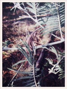 The Tin Lid leads, The Librarian follows and I keep getting distracted by the light. It is mesmerising, guttering softly through the leaves as if caught on a breeze. The pathway is striped in shade, delicate geometries of shape that coalesce and disperse around us, and although the sun beats down on a 36º-day, it is cool and dank and shrouded.